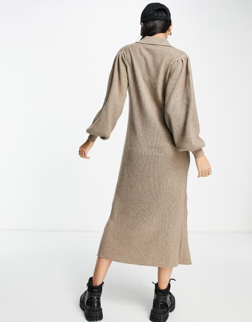 Selected Femme Robe mi longue en maille de laine m rinos manches ballon Beige m lang
