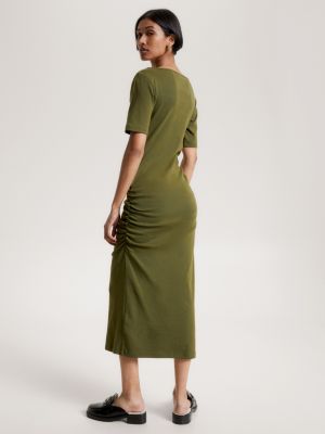 Robe T shirt midi ajust e d tail ruch Vert Tommy Hilfiger