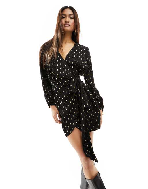 Never Fully Dressed Robe portefeuille courte motif tachet dor Noir