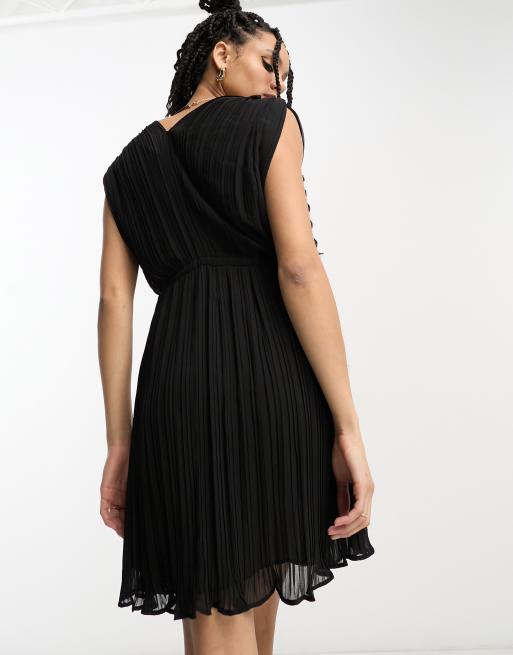 Robe longue pliss e avec manches vas es Taille Unique Couleur Noir
