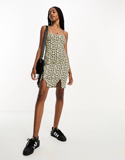 Noisy May Tall Robe caraco courte fendue devant Noir et jaune fleuri