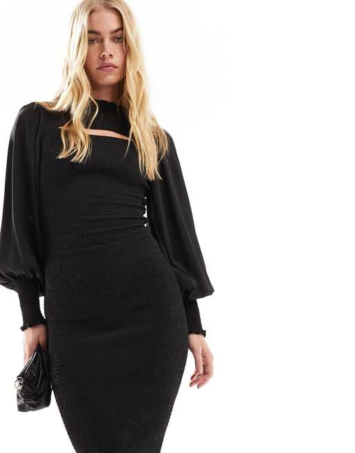 Robe outlet froncée noire, Pretty Lavish Robe fronc e longueur mollet d coupe Noir outlet