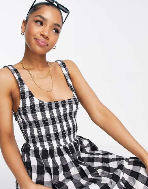 Robe outlet vichy noir, ASOS DESIGN Robe d t longue fronc e volants et carreaux outlet