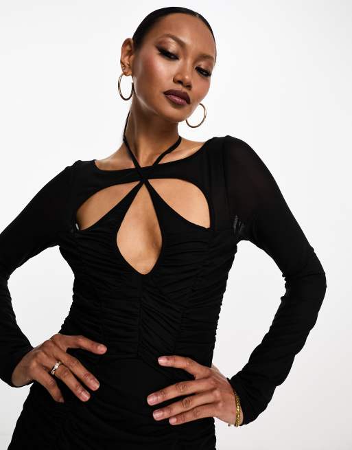 ASOS DESIGN Robe mi longue fronc e d coupes Noir