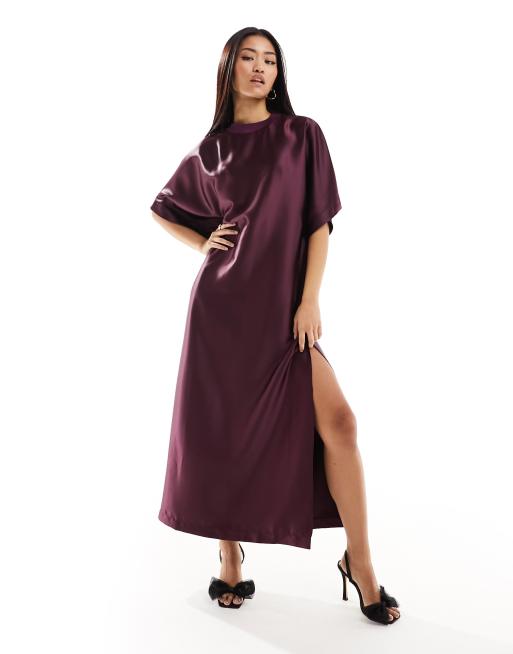 Robe longue outlet bordeaux asos, ASOS DESIGN Robe t shirt mi longue coupe oversize en satin Bordeaux outlet