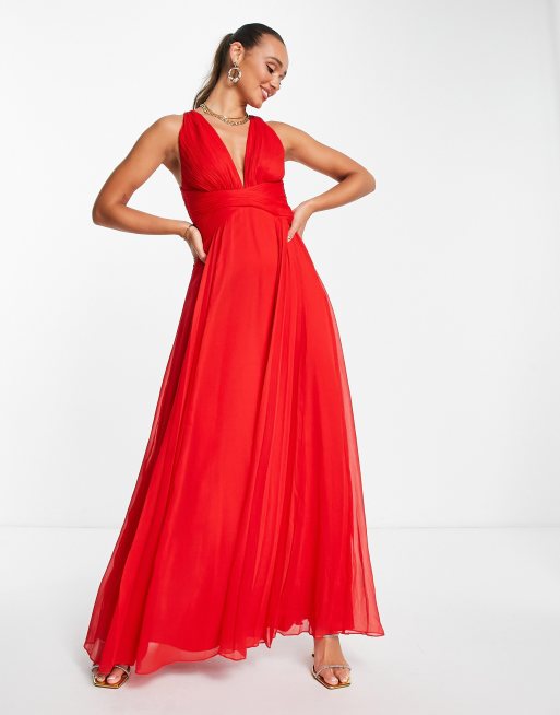 ASOS DESIGN Robe longue drap e corsage fronc et taille crois e Rouge