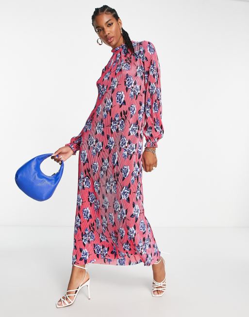 ASOS DESIGN Robe longue pliss e fleurs avec col montant Rose