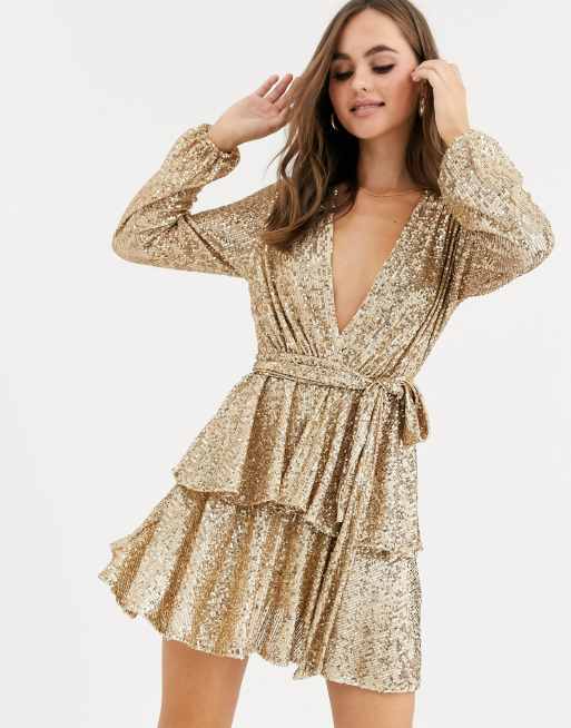 John Zack Robe patineuse d collet plongeant et sequins Dor contrastant