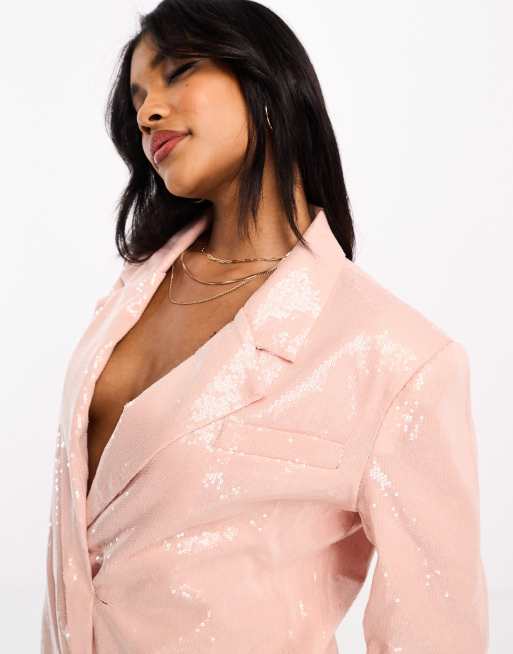 Robe blazer outlet rose poudré, Robe Blazer Oversize Noire Manches Courtes Et paulettes outlet