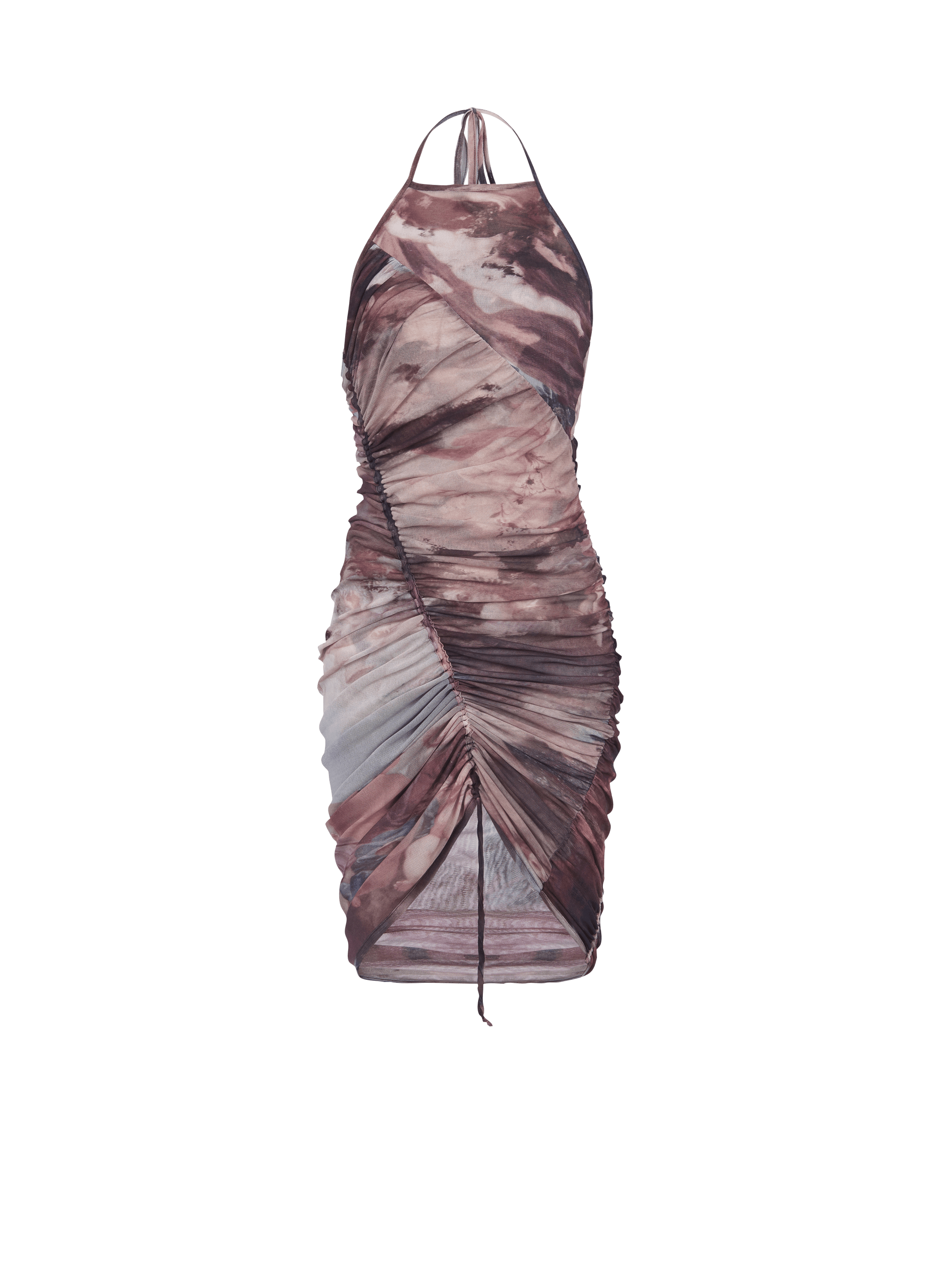 Robe courte en tulle drap imprim Pastel multicolore Femme