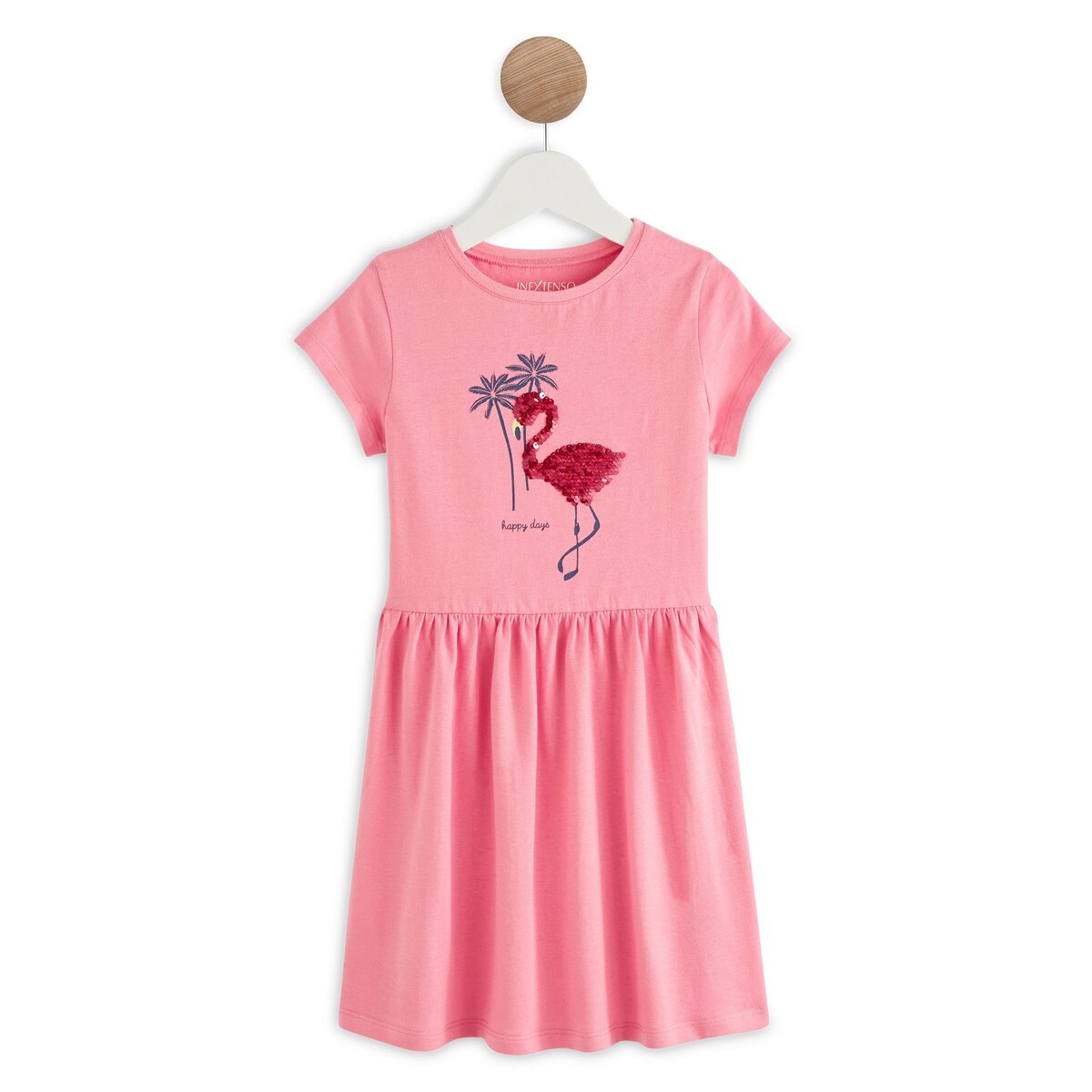 INEXTENSO Robe manches courtes sequins flamant rose fille pas