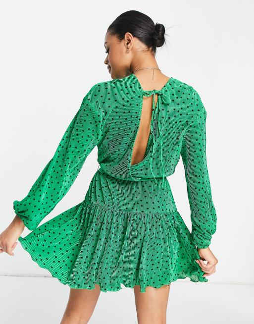 ASOS DESIGN Robe courte pliss e avec ceinture Vert pois