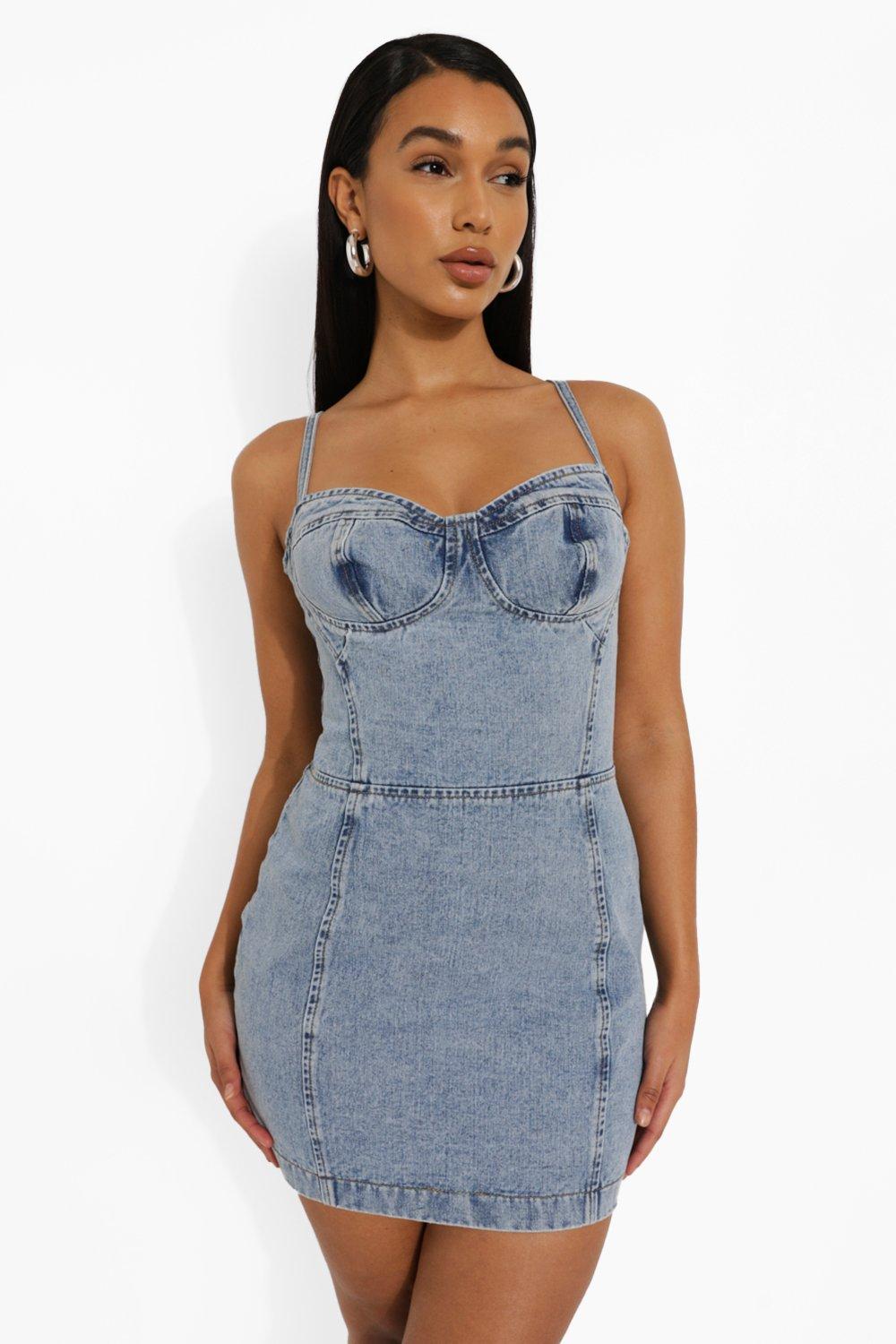 Robe outlet jean courte, Acid Wash Cupped Bodycon Denim Mini Dress outlet