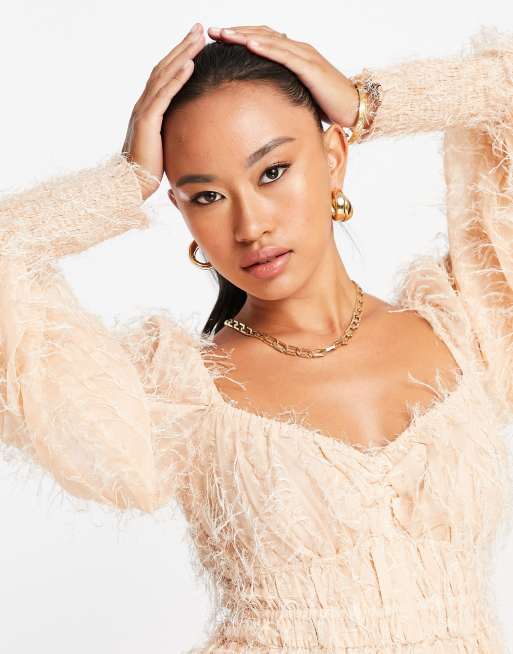 ASOS DESIGN Robe courte duveteuse avec buste et poignets fronc s Rose p le