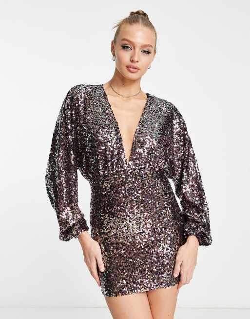 Pull Bear Robe courte en sequins manches longues et d collet plongeant Multicolore