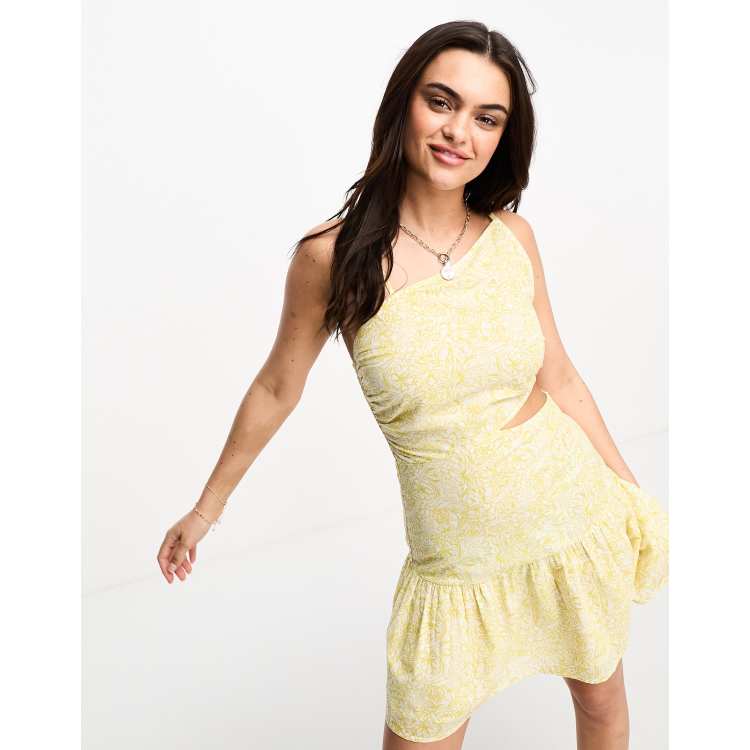 Stradivarius Robe courte en coton d coupes Jaune fleuri