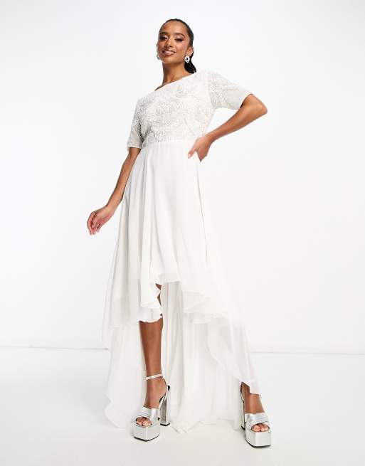 Beauut Petite Robe 2 en 1 de mari e ornement e courte devant et