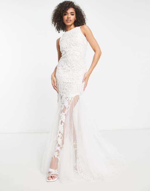 A Star Is Born Robe de mari e longue avec jupe en tulle Blanc