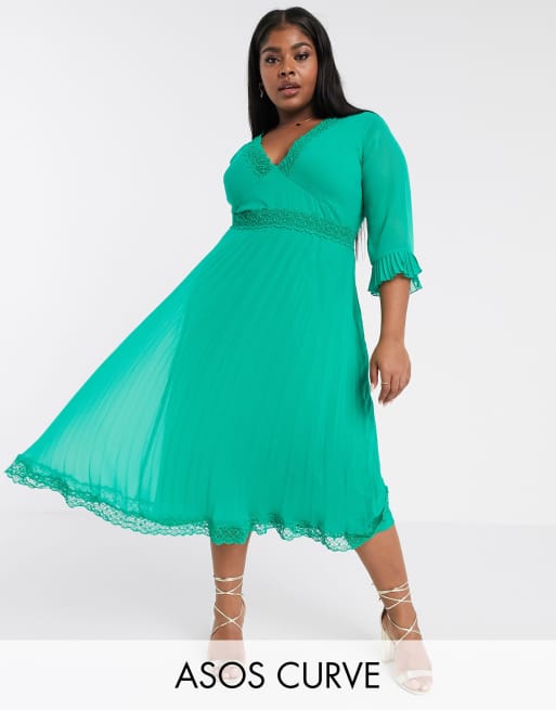 ASOS DESIGN Curve Robe mi longue pliss e empi cements en dentelle Vert meraude