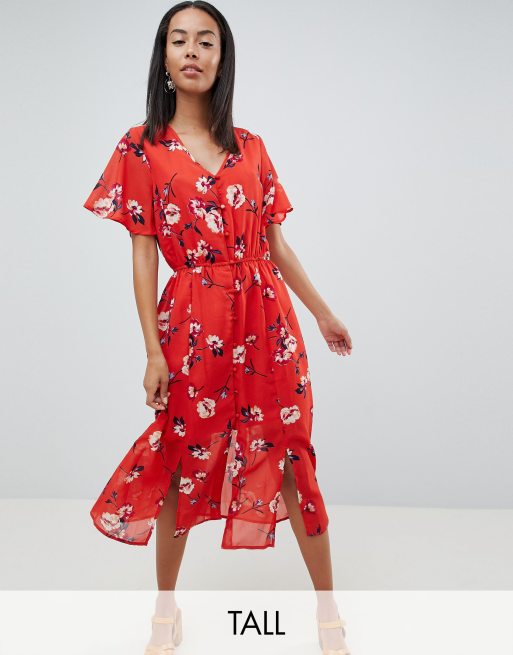 Missguided Tall Robe mi longue fleurie boutonn e sur l avant