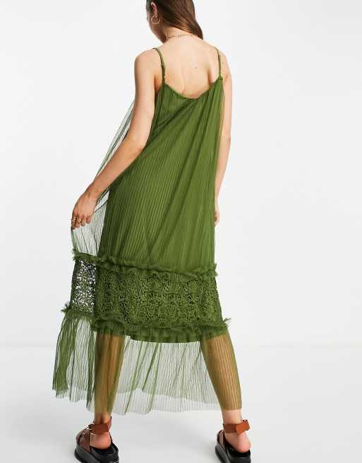 Vila Robe caraco longue jupe volant e en tulle Kaki