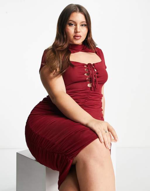 Asos robe femme outlet grande taille, ASOS DESIGN Curve Robe mi longue en tulle fronc lacets avec outlet
