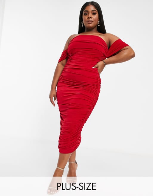 Club L London Plus Robe crayon fronc e paules drap es Rouge
