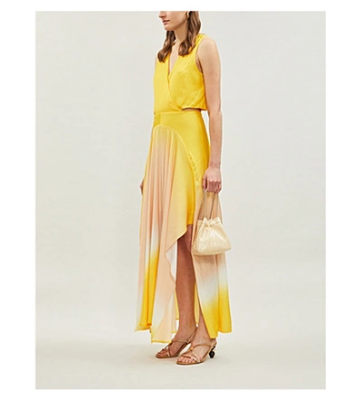 Robe outlet resia maje, Resia Tie dye V neck Sleeveless Satin Maxi Dress In Yellow outlet