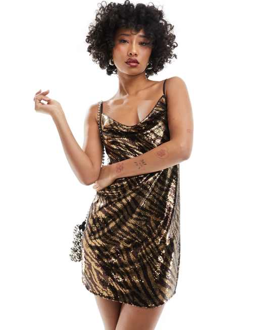 AllSaints Haddi Robe nuisette courte sequins effet tigr Dor