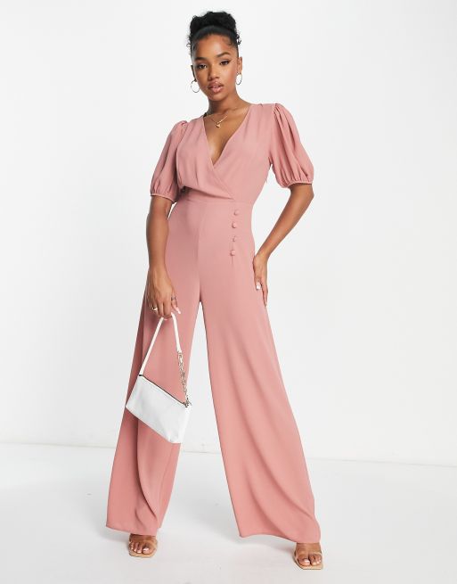 ASOS DESIGN Combinaison manches bouffantes en cr pe effet