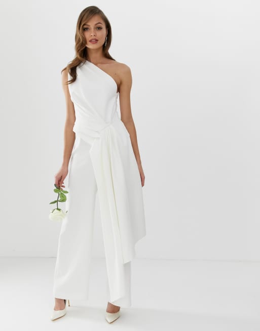 ASOS DESIGN Erin Combinaison de mariage drap e paules d nud es Blanc