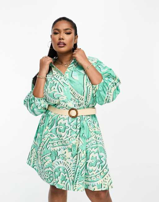 River Island Plus Robe chemise ceintur e motif cachemire Vert