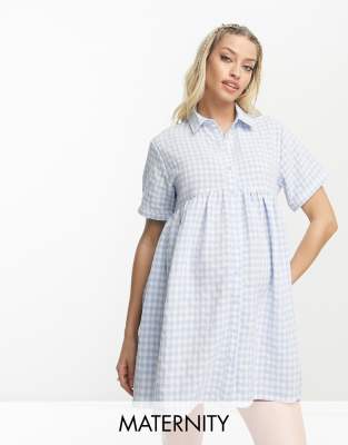 Cotton On Maternity Robe chemise courte ample volants Vichy