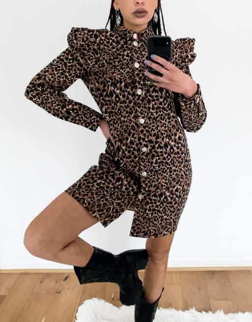 Noisy May Robe chemise en jean imprim l opard avec plastron volants