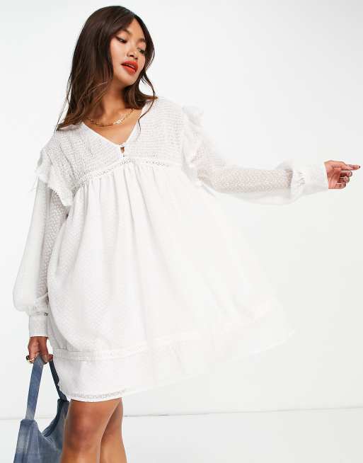 ASOS DESIGN Robe babydoll courte fronc e avec empi cements en dentelle Blanc