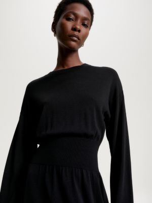 Robe midi d contract e cintr e en jersey Noir Tommy Hilfiger