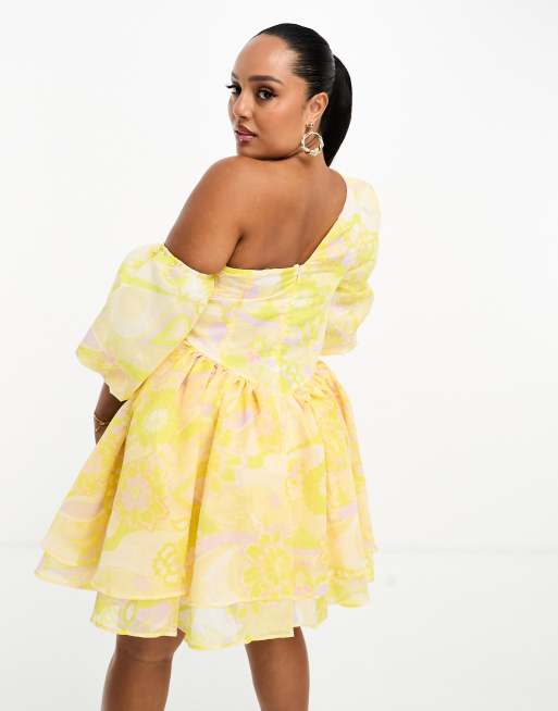 ASOS LUXE Curve Robe courte asym trique manche bouffante avec
