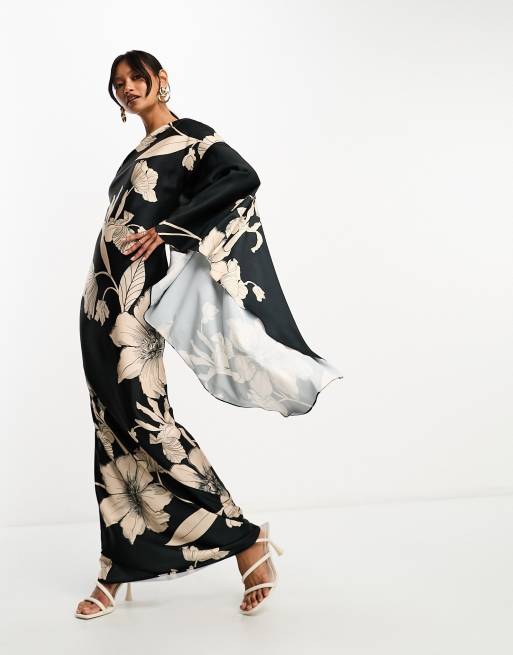 Robe outlet manche unique, Robe longue asym trique en satin manche unique vas e et d tail outlet