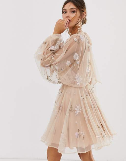 ASOS EDITION Robe en tulle manches ballon avec motif fleuri