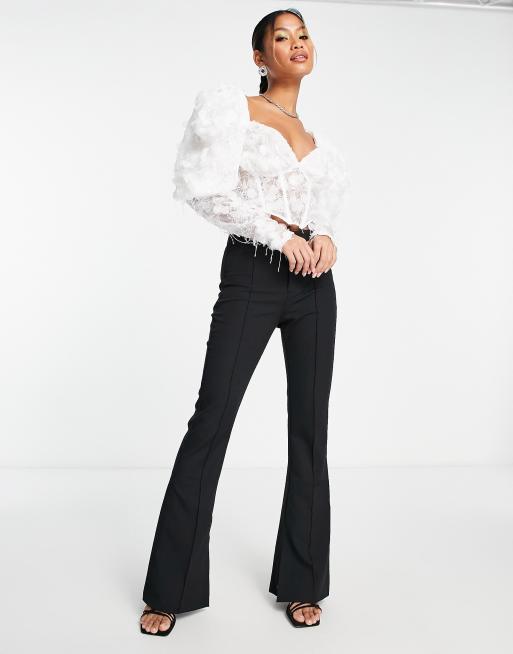 ASOS DESIGN Top corset de qualit sup rieure 3D en dentelle avec manches bouffantes Blanc