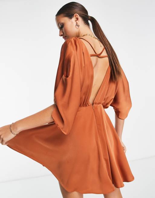 ASOS DESIGN Robe courte satin e avec manches chauve souris et
