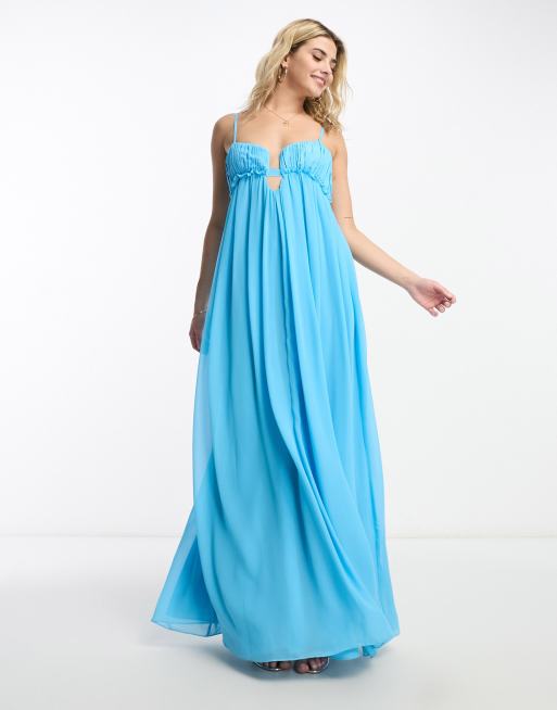 ASOS DESIGN Robe babydoll longue corsage fronc Turquoise