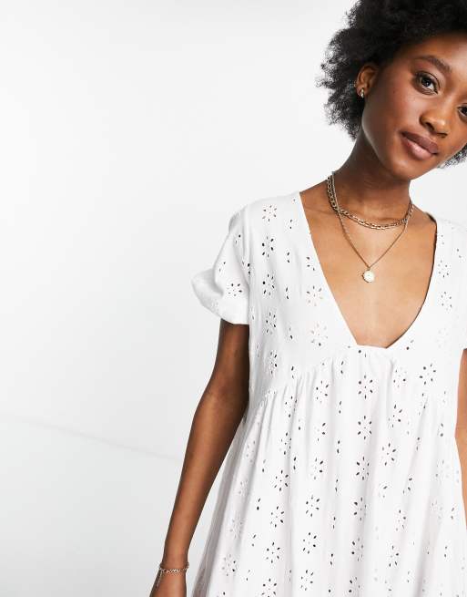 ASOS DESIGN Robe mi longue en broderie anglaise avec col V et