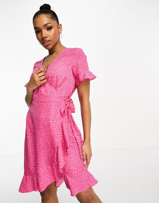 Robe outlet portefeuille pois, Vero Moda Robe portefeuille courte pois Rose outlet