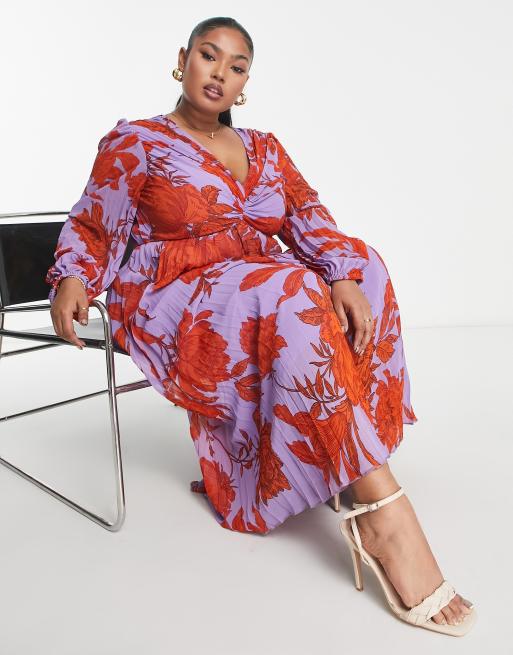 ASOS DESIGN Curve Robe mi longue fleurie d collet plongeant et corsage pliss