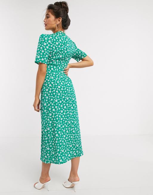 ASOS DESIGN midi tea dress with buttons and split detail in green