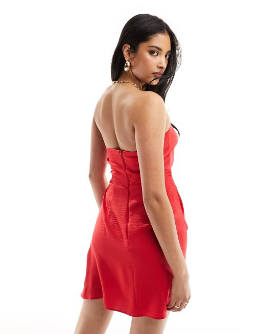ASOS DESIGN Robe bustier courte taille fronc e en satin Rouge