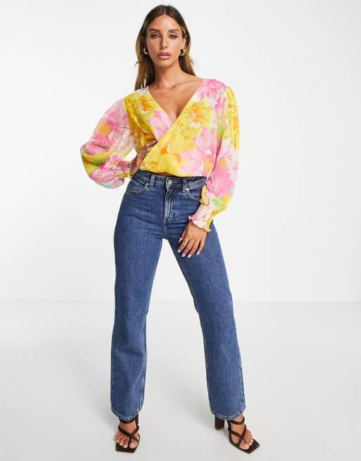 ASOS DESIGN Top crois d collet profond et imprim fleurs vif