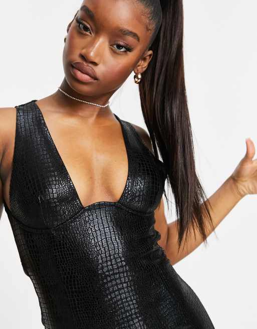 Minami Robe Moulante En Cuir Pu Avec D collet Plongeant Et Taille