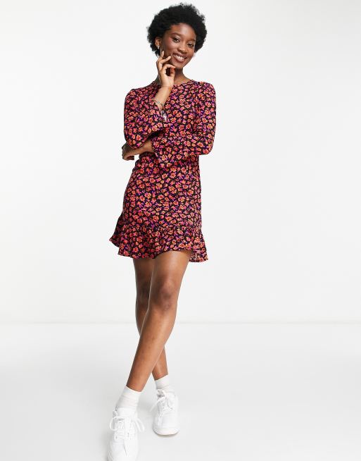 Stradivarius Robe courte manches longues Rouge fonc fleuri